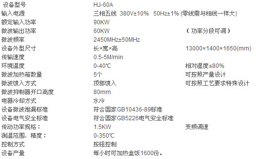盒飯微波加熱機(jī)技術(shù)參數(shù):